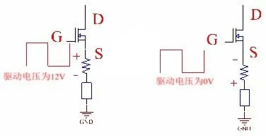 首先当驱动为高电平的时候,假设G对地有一个12v的电压,当MOS管开通的时候,因为di/dt比较大,有感电阻的电感可能出现上正下负的电压,这个时候GS点电压就小于12V。